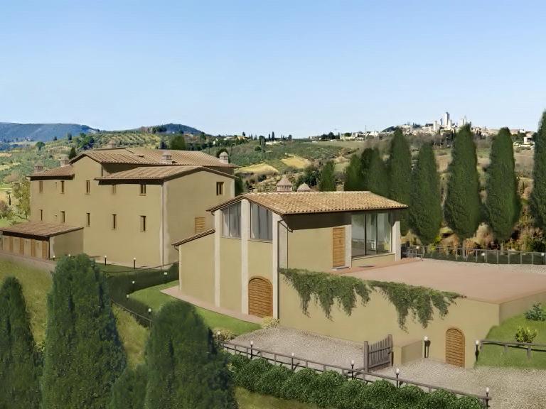 From the hill you can enjoy the views over the towers of San Gimignano, on one inside, and the valley where there was the ancient Francigena road, on the other side. The property, reached by approx. 3 Km of gravel road, is located approximately 9 km far from San Gimignano, 40 Km from Siena, 50 Km from Florence.