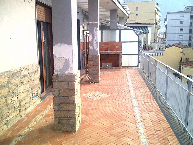 CASTELLAMMARE DI STABIA PIAZZA SPARTACO RIF P27:Attico di prestigio ristrutturato composto da ampio ingresso salone con parete cucina in muratura 2camere 1cameretta uso studio 2bagni terrazzo a livello di 33mq e p.auto coperto condominiale a pagamento.Panoramico e luminoso.Veduta mare.Tel 0818562621 3357796217