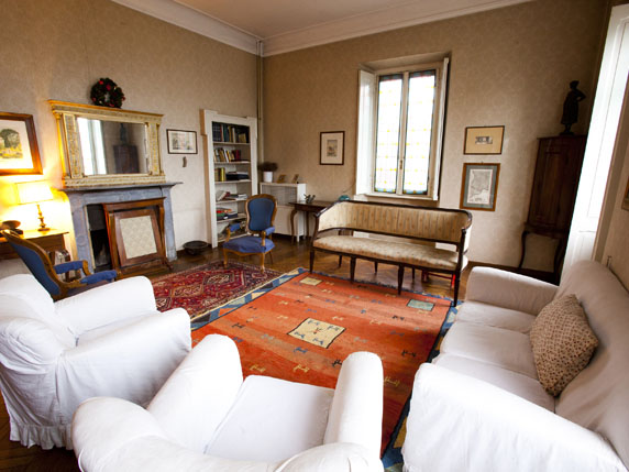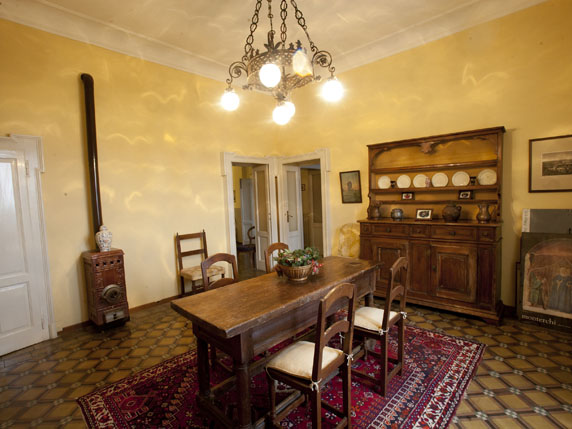 The villa's main residence is distributed on two floors; many of the main ground floor rooms benefit from direct access to the garden or to the spacious terrace on the southwest side of the house. The ground floor also has a spacious entrance hall, which connects the large living room with stained glass doors, the kitchen and two additional rooms, and a bathroom. The first floor has all the necessary fixtures and facilities to create a separate apartment with independent entrance; or if used as the sleeping quarters, it has sufficient space to create a private dressing room and en-suite bathroom to go with each bedroom. On the lower ground-floor there are various unfinished rooms, which could be made into storage rooms or a wellness area. The area's size and high ceilings would make it possible to create an indoor swimming pool, enclosed by windows, which look outs over the private garden.