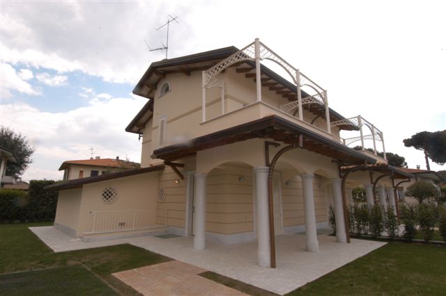 В 900 метрах от моря, вилла новой постройки на две семьи. Каждая часть имеет площадь 212кв.м. и состоит из: гостиная с кухней, 2 спальные, 3 ванные, мансарда, кладовка, терраса, сад (216/239 кв.м.).