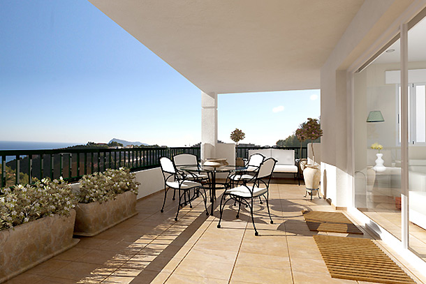 New luxurious apartments with a view of the sea are located in premium residence Altea Hills. Spacious rooms, cosy living room, American kitchen, terrace (17 m2), garage for one car. There are swimming pool and a beautiful garden on the territory of the residence.