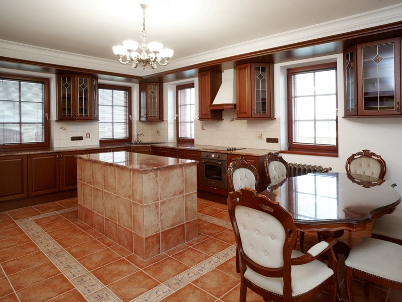 - кухонный гарнитур выполнен в деревенском стиле с гранитной доской