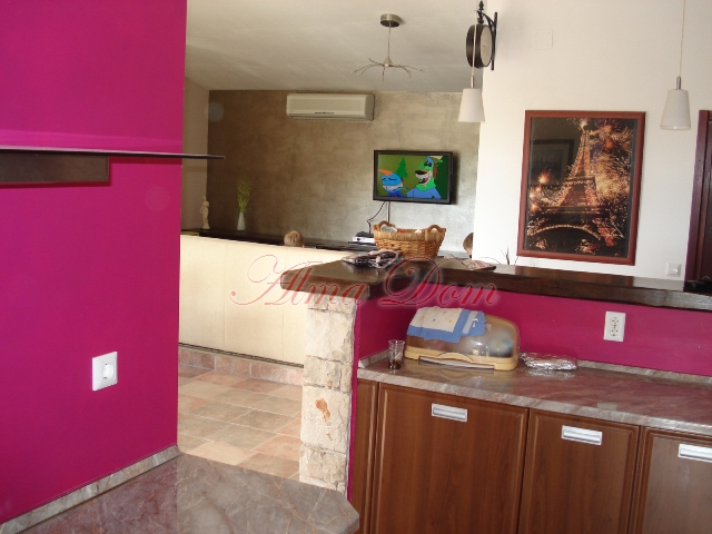Дом состоит из трех спальных комнат, кухни с гостиной и столовой и большиой каменной барной стойки.