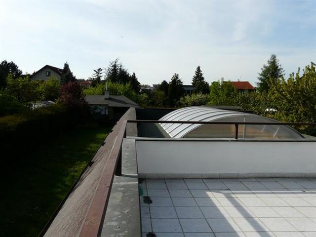На первом этаже находится холл, просторная гостиная с камином, кухня, кабинет, туалет, бассейн с подогревом (8х4 м.) и выходом в палисадник. На втором этаже – 3 спальни со встроенными шкафами (одна из них имеет выход на террасу), ванная комната, туалет. На третьем этаже, который использовался для гостей, находится большая комната, кухонный бокс, ванная. В подвальном этаже дома имеется техническое помещение с котлом, склад, место для сушки белья. В палисаднике – облагороженная, крытая площадка с камином. В доме также есть телефон, видеотелефон, сигнализация, спутниковое телевидение.
