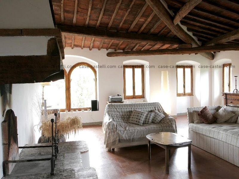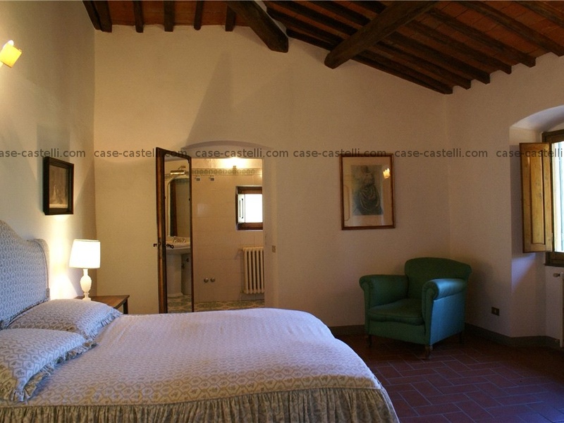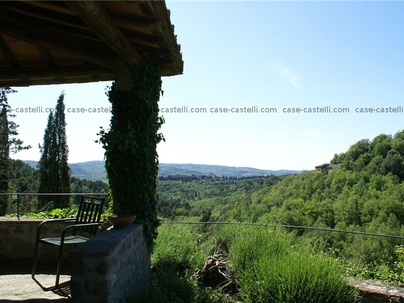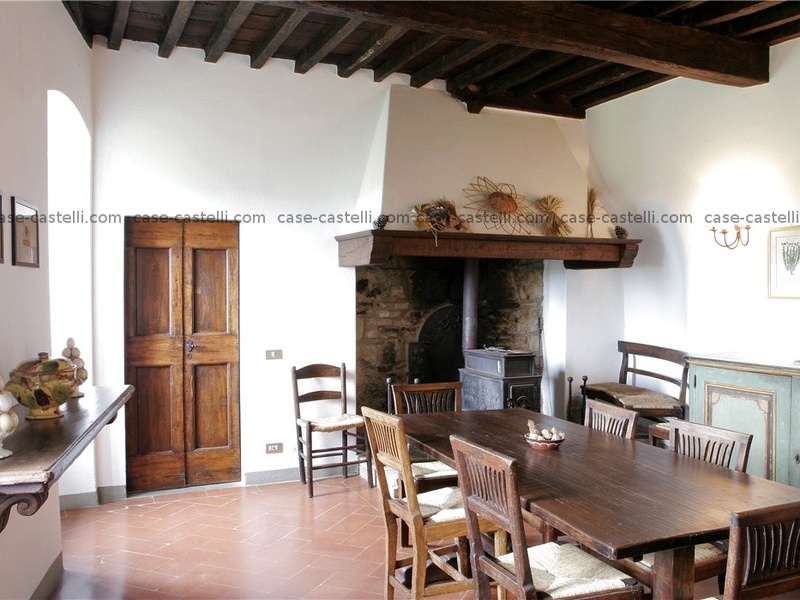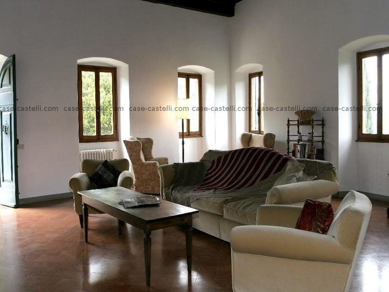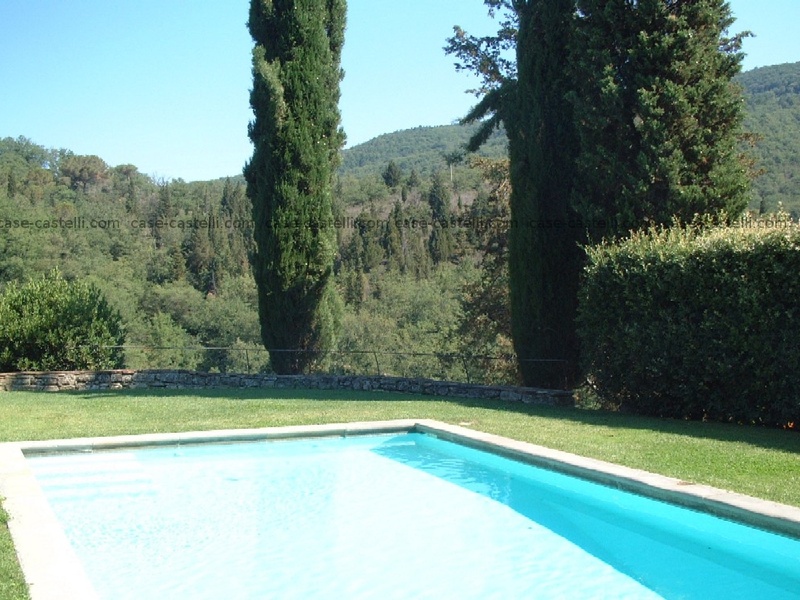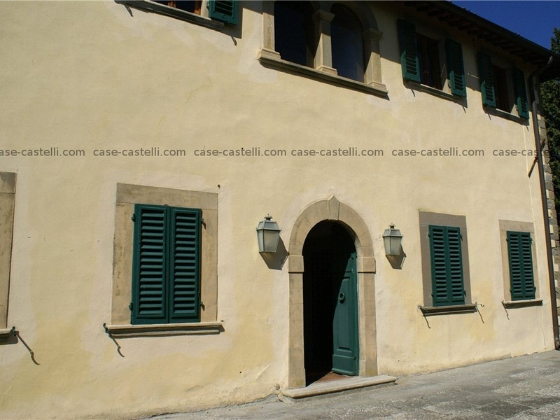 Noble old villa situated in the heart of Chianti. The villa is 400 metres above sea level and has beautiful untouched views; it extends over three floors and they are all in excellent condition and the last restoration work was carried out in 1996. The gardens and terraces are habitable and extend over two levels and the swimming pool is 5x10 and situated on a patio near a green field with a gazebo below the villa. From the kitchen you can see the views over the terrace and is covered and ideal to enjoy your meals while you look at the views over the countryside. The stairs and door frames are made of stone (pietraserena). The living room on the first floor has a high ceiling made of wood so you feel the noble presence.