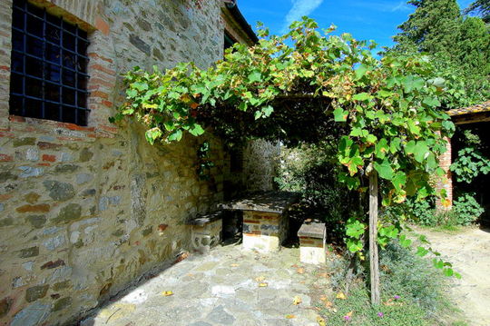 At the end of a small quiet character hamlet there’s this spacious old building that has been completely renovated. As soon as you arrive you are hit by the beautiful pergola covered with strawberry grapes and it is the only outside space apart from the large terrace on the roof which is very intimate. Being one of the last houses in the hamlet it opens out onto the beautiful Chianti countryside. In the living room there is a beautiful fireplace and the bathrooms are well equipped and there is even a Jacuzzi, all the particulars are very well done from the flooring to the fixtures. The furnishings are completely in style and chosen with a lot of attention and could be included in the sale. There is also a 30 m2 annexe on two floors which is part of the property.