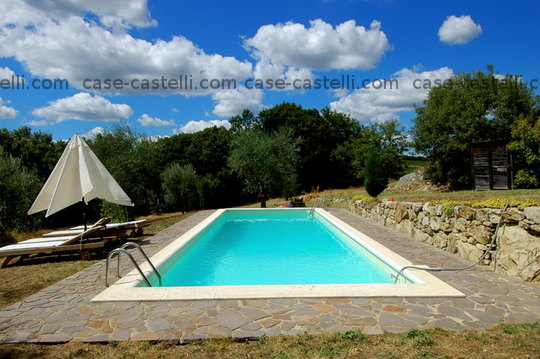 Rare in Chianti as you don’t often find small detached houses in Chianti as they are normally big; there is 200 m2 externally and a converted barn. Within there is a charming renovated house that is suitable as a private residence but also as an investment and could be rented out. It has two hectares of ground of which one is vineyards of Chianti Classico and 120 olive trees. There is a large swimming pool and wonderful views towards the south and in the distance you can even see Siena. In fact we are only 20 minutes from the town of Siena and near to a beautiful village where there is a restaurant and bar.