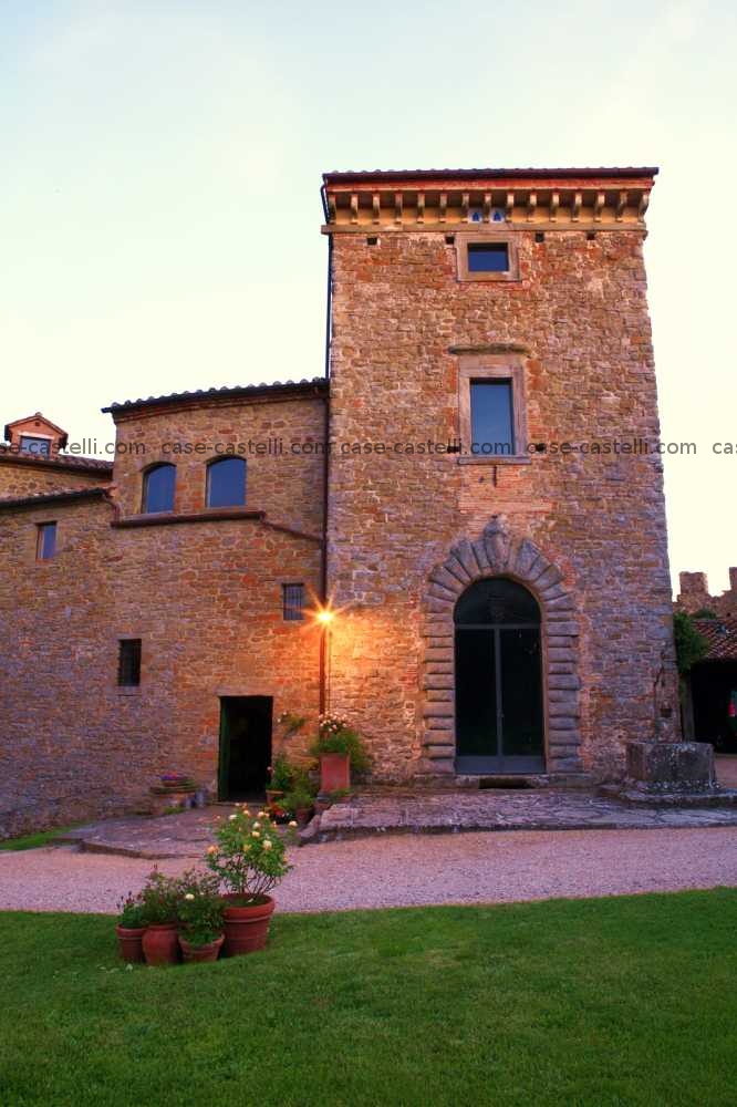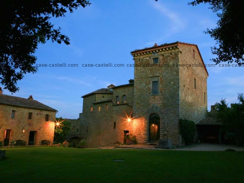 The castle is situated on the border between Tuscany and Umbria. The building is in grey stone and has 28 rooms and 12 bathrooms with a covered area of 19,000 m2 while the internal garden is about 16,000 m2. The property is surrounded by 32 acres of forest with pine trees, oak trees, cypress trees and olive trees that produce organic olive oil. There is also a helipad for helicopters and a consecrate chapel, a beautiful tower and parking for six cars. The castle is within easy reach of Perugia airport.