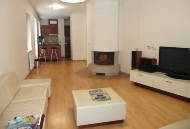 Большая гостиная с камином и выходом на террасу. Деревянная кухня, сделанная на заказ. 2 спальни. 2 санузла. Возможно вселение без какого-либо ремонта.