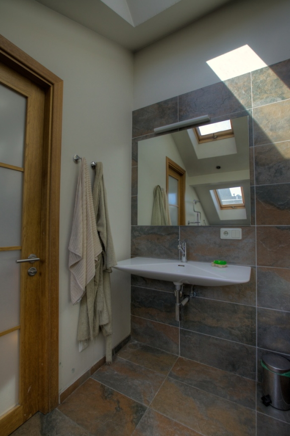 Просторная квартира мансарда. В отделке квартиры использованы высококачественные материалы - паркет, каменная плитка, дизайнерская мебель, хорошая техника. Включает: - гостиную с кухней - спальню - детскую комнату / рабочий кабинет - просторную ванную комнату. Газовое отопление, полы с подогревом. Из квартиры есть выход на террасу с видом на центр города и башни Старого города. Одно места парковки во дворе дома.