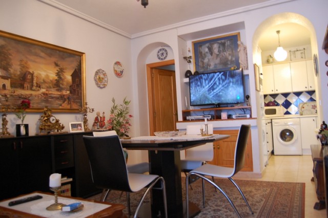 Дом смежный с другими домами такой же конструкции. Дома объединены в блоки. Есть общий бассейн и сад. У каждого дома свой участок земли, который хозяин может использовать, как хочет. Курортный район, престижная урбанизация Торе Бланка. Бунгало, на нижнем этаже, площадь 150 кв.м, площадь участка 70 кв.м, состоит из 2-х гостиных, 4-х спален, 2-х ванных комнат, кухни. А также бытовая техника, мебель, кондиционер, застеклённый солярий 40 кв.м, барбекю, общий бассейн, состояние бунгало отличное, инфраструктура в шаговой доступности, до моря и пляжа 500 м. А также открытая парковка для автомобилей.