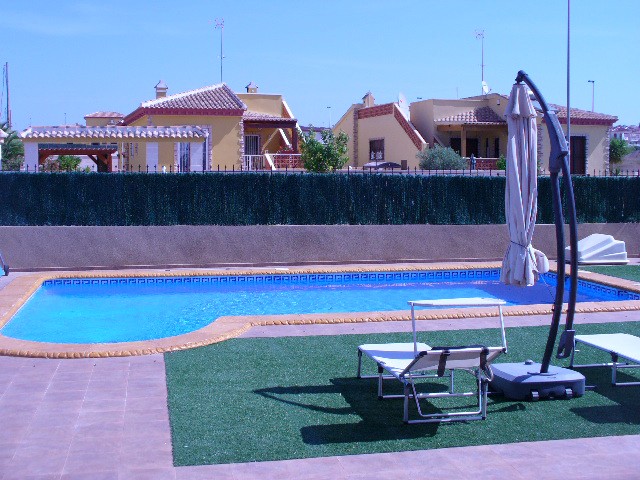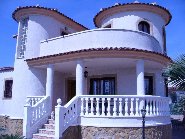 Шикарная вилла в Ла Марина (Сан Фульгенцио) в пяти километрах от пляжей Гуардамара, в спокойной местности в окружении природы. Вилла построена в классическом стиле "Estilo Mediterraneo" по подобию средневековой башни, полукруглый салон с огромными окнами на всю стену,три просторные спальни, отдельная кухня, две ванные комнаты,и терраса с видом на частный бассейн размером 4х8,5 м2. На участке размером в 500 м2 также располагается небольшой садик с пальмами, солнечная терраса перед бассейном, барбекю, и место парковки для машины.