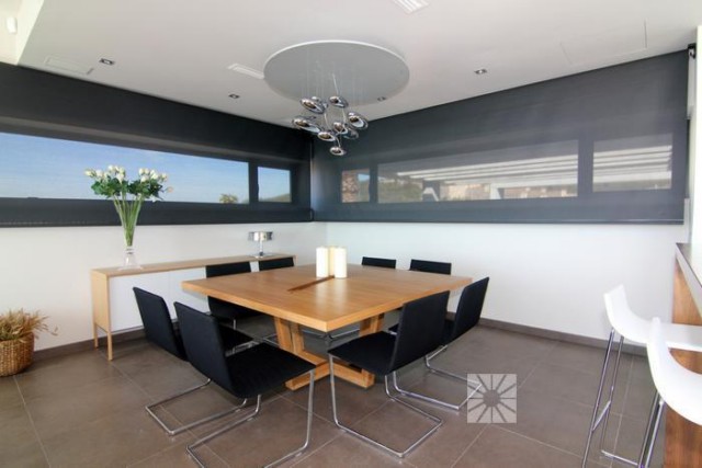 Строительство новой ультрасовременной виллы в эксклюзивном резиденциальном комплексе Jazmines, в районе Кумбре дельСоль, между Хавеа и Кальпе, в 5 минутах от Коммерческого Центра, 2 км до пляжа. Современный проект, приватный и безопасный, предназначен для удовлетворения самых взыскательных и требовательных. Недвижимость состоит из двух уровней: на нижнем этаже находится гараж, приблизительно 80 кв.м., вместимостью на 3-4 автомобиля, огромная кухня, по дизайн-проекту с эффектным островом в центре, которая сообщается со столовой, верандой и зоной барбекю, здесь же находятся кладовая, прачечная и туалетная комната. Несомненно, основное внимание притягивает салон-гостиная, где впечатляет шестиметровая высота потолков и стеклянные стены, которые позволяют наслаждаться солнечным светом и восхитительными видами на море. Отличительной деталью верхнего этажа является Главная спальная с приватной террасой 41 кв.м., которая впечатляет своими размерами, около 34 кв.м., и состоит из зоны отдыха, гардеробной и ванной комнаты, где есть джакузи и душевая кабина. на этом же этаже располагаются ещё три спальни, каждая из них имеет встроенный шкаф и ванную комнату en suite. Зону отдыха верхнего этажа завершает просторный салон-кинотеатр. Дополняет эту виллу ландшафтный сад, спроектированный из различных элементов: веранда, чтобы наслаждаться морским бризом, зона барбекю для пикников на открытом воздухе, огромная терраса, чтобы загорать, и великолепный бассейн “инфинити”, который сливается с бесконечностью Средиземного моря. На стадии строительства, возведены стены, сдача объекта летом 2013 года. Дом построен на участке 1.045 кв.м имеет общую площадь 587,55 кв.м. с полезной площадью 276, 55 кв.м Верандa 34.30 m2 Наружная терраса 117,70 m2 Гараж c пандусом и aвтомат-ворота 159 m2 Пергола 34,30 m2 2 холла Полностью мебелированная кухня Столовая 4 спальни 5 С/Узлов Бассейн-Инфинити с подсветкой, поверхность воды 65,60 кв.м. Стены по периметру из натурального камня Солнечные панели Аудиосистема Динамики интегрированные в потолках установлены в кухне, спальнях и ванной комнате, от B & W или аналогичной марки, проигрывание multi-room аудиосистемы с помощью дистанционного управления. Кинотеатр Предварительная установка для кинотеатра в гостиной, в соответствии с планом. Мультирум аудиосистема SONOS или аналогичной марки, с использованием различных аудио источников, подключенных к сети Ethernet: компьютеры, плееры, мультимедийные жесткие диски, интернет-радио, интернет услуги и т.д. Солнечные коллекторы Солнечные панели для производства горячей воды в соответствии с действующими нормами. Вентиляция Система вентиляции жилья с помощью установки решетки воздухозаборника Видеонаблюдение Система видеозаписи интегрирована в системы домашней автоматизации, состоящая из 4 внешних камер, просмотр записей с любого компьютера, подключенного к сети дома. Кондиционирование Термостаты для индивидуального регулирования температуры в каждой комнате, интегрированы в системе Умный Дом. Контроль Главная Система автоматизации контролируется с помощью электрических переключателей и domotic колодки, 12" цветной сенсорный экран, установленный на стене, пульт дистанционного управления с сенсорным экраном, с любого компьютера, подключенного к сети, из Интернета и с мобильных телефонов, если они настроены. Общие Г