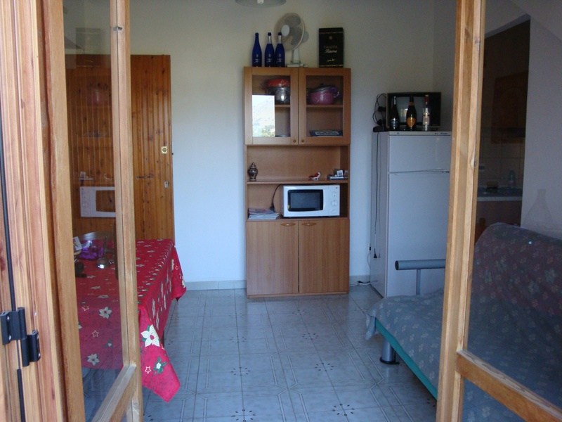 Квартира состоит из: гостиная с кухней с выходом на террасу, спальня, корридор, ванная комната (душ, биде, туалет и мойка), терраса с видом на горы.