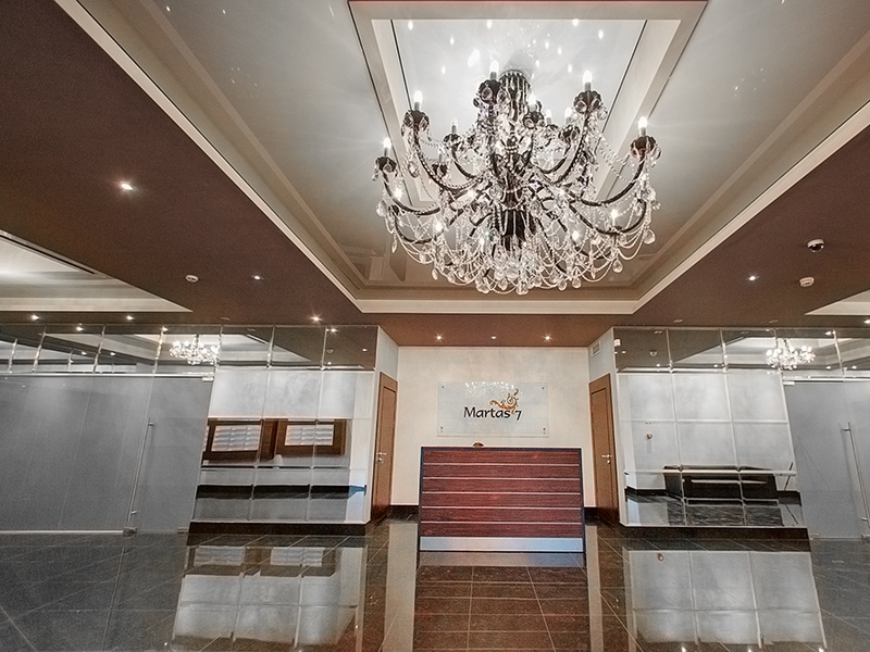В 7-этажном доме установлены два лифта фирмы Otis с роскошной внутренней отделкой. Для нужд жильцов предусмотрены помещения для колясок и велосипедов. Фасад здания декорирован мрамором. Просторный и роскошный вестибиль с местами для отдыха, интерьер лестничной клетки был разработан в дизайнерском салоне. Пандус въезда обогревается, чтобы предотвратить образование льда в зимний период. На автостоянке предусмотрено обеспечить комфортабельную температуру примерно +10º автоматическим включением вентиляторов, обеспечивающих подачу теплого воздуха, что будет экономическим решением одновременно. Видеодомофоны перед входом в здание и перед входными дверьми в квартиры.
