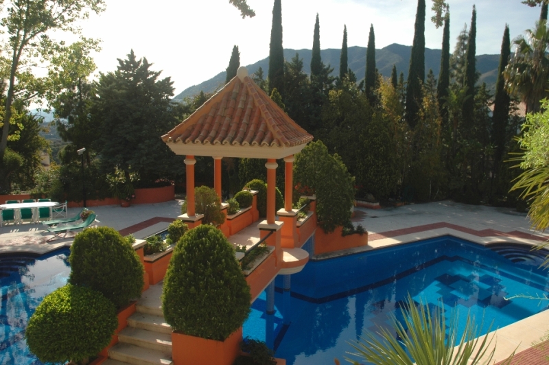 Панорамный вид на  Михас, Фуэнхиролу и море. Также вилла располагает центральным кондиционером, солнечные батареи, 230 М2 БАССЕЙН, собственные сады с освещением 3500 М2, система безопасности.
