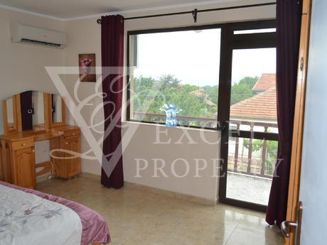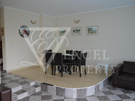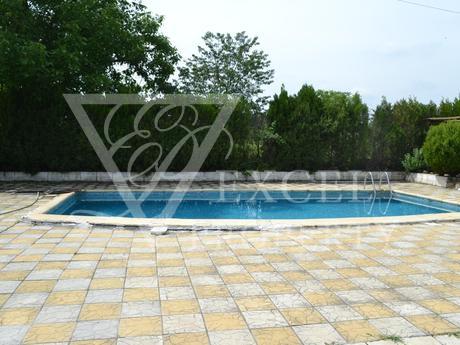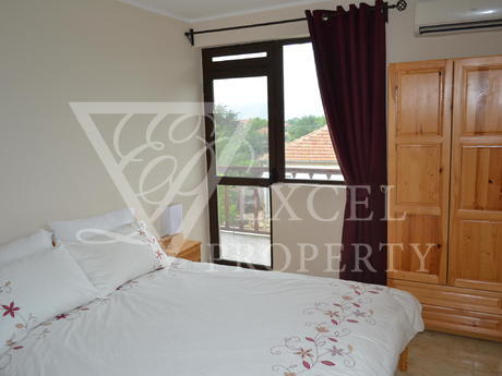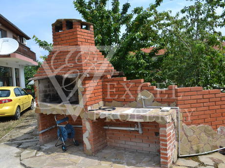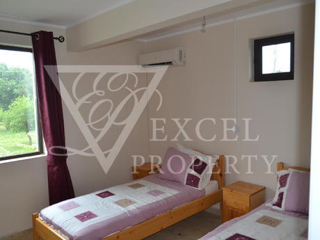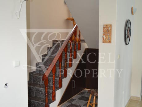 Excel Property offer here for sale a semi detached house in a complex of six houses with 1430 sq.m. plot of land This means that every owner of house will have one sixth ideal part of the whole plot. There is a big swimming pool, BBQ and parking places available. The house it self is 132 sq m area. It is on two levels with internal staircase. The first floor has a large living room with kitchen, bathroom and toilet, on the second floor there are three bedrooms, two bathrooms with toilets and a large terrace. The house is supplied with drinking water from the main village water supply, which runs along the front yard places. Each house has separate water meter. The waste water is connected in the main sewerage of the village passing the street in front of the plot. The house is supplied with electricity from the main power supply and the house has a separate electric meter. Heating is with four air conditioners, one in every room. Keep in mind that for the kitchen there is no furniture only electrical appliances but you can note this on the pictures.