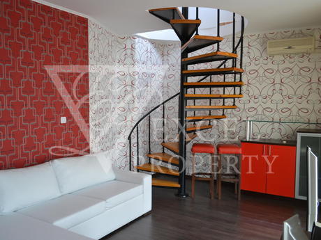 Excel Property offers a wonderful three bedroom apartment on two levels with an area of 146 square meters. Located on the fourth floor it offers a living room with kitchen, one bathroom and a balcony overlooking the pool on the first level. An internal staircase takes you upstairs where you will find a corridor three bedrooms, one bathroom and two balconies. Flat is offered completely furnished, after refurbishment and new flooring on the balconies. Kitchen with all appliances, living room with beautiful leather sofa, large plasma TV and home theater. There are four air-conditioners and balconies are large enough for a table with four chairs and a few sun beds.