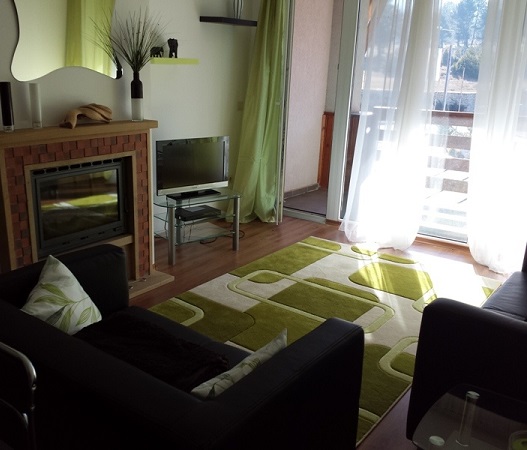 We offer for sale near golf complex. In the new building with Act 16, with an area of 110 sq m, 4 floors. It consists of two bedrooms, kitchen, living room, bathroom and terrace. The complex features a spa, indoor and outdoor pool, lobby bar, garden with barbecue and parking. Price: € 43,000