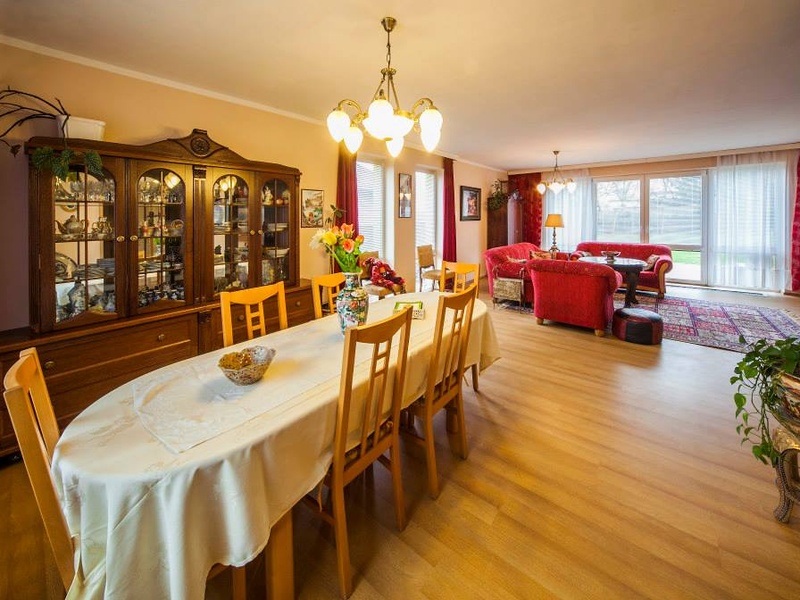 Предлагаем на продажу эксклюзивный великолепный дом 7+1 в новой вилловой части Говорчовице, район Прага-Восток, который располагает достаточным количеством места для большой дружной семьи. Из просторной гостиной сквозь большое французское окно Вы попадете в зеленый солнечный сад. Там построен отличный крытый бассейн и садовый домик с уютным местом для гриля и отдыха с друзьями и семьей. Участок прямоугольной формы размером 28х35 метров расположен по направлению на юго-восток. Застроенная площадь 177 м2 (18% общей площади участка) от общей площади участка 982 м2. Жилая площадь 164 м2: 1-й этаж 74 м2, 2-й этаж 91 м2. Используемая площадь 256 м2: 1-й этаж 125 м2, 2-й этаж 131 м2. Отопление состоит из тепловодной двойной трубчатой системы из пластикового материала, проведено как в радиаторы так и к частично отапливаемым полам в ванных комнатах. Отопительный объект — электрический накопительный бак с проточным отоплением TUV. Альтернативным теплогенератором является камин в гостиной с распределением теплого воздуха прямо до помещения под крышей дома. Нагрев воды газом. Также к дому подведена канализация, городской водопровод, готовый колодец глубиной около 30 м. Белые пластиковые окна. На крыше бетонная римская черепица. До пражской станции метро Летняны 10 минут на автомобиле.