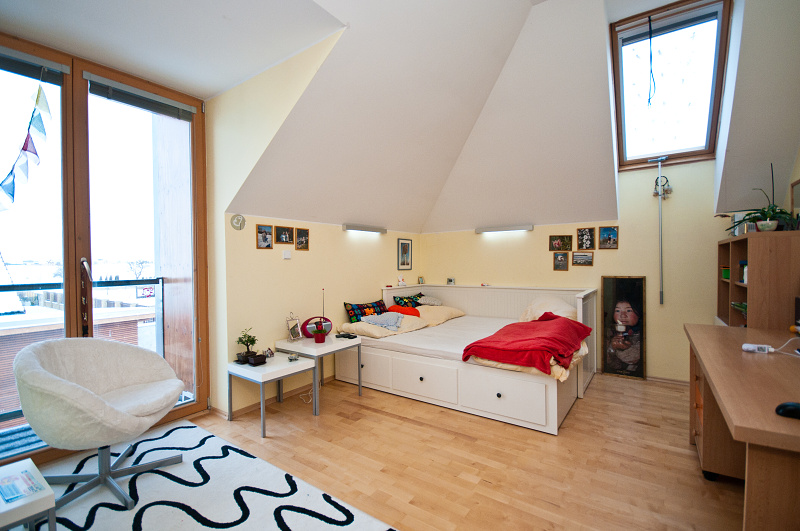 В районе Прага-Запад, в спокойном месте, продается люксовая вилла в стиле «хай-тек» на земельном участке площадью 1600 м² с небольшим садом. Дом построен согласно правилам Фэн-Шуй – гармоничной организации жилого пространства. Стильно оформленные жилые комнаты, с органичными цветовыми решениями. Жилая площадь виллы – 250 м². Особенности планировки виллы: 1 этаж: прихожая, кладовая, рабочий кабинет, жилая комната, ванная комната и санузел, кухня, столовая, котельная. 2 этаж: 5 спален, 2 санузла, 2 гардероба, зал, балконы. Цокольный этаж: склад и зал для фитнеса. В доме газовое отопление, напольное покрытие из ясеня, в ванных комнатах и санузлах на полах плитка. Имеется просторная терраса.