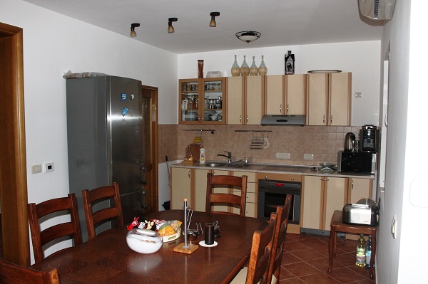 Новый дом расположен в курортном поселке Баошичи. Удаленность от моря не более 10м, рядом (до 50м) находятся оборудованные пляжи, ресторан, кафе, магазин. На первом этаже в доме расположена гостиная-кухня-столовая, спальня и санузел, на втором этаже – 3 спальни и санузел, две спальни имеют выход на балкон второго этажа. Имеется гараж и 2 помещения для инвенаря. Оборудована большая терраса с открытым роштилем. В гостиной расположен камин. Вокруг дома ухоженный плодоносящий сад (апельсины, мандарины, лимоны, киви, виноград, инжир)