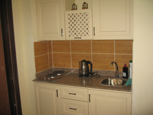 Studio for rent in a new residential complex in Florence Khamsin Beach (Florenza Khamsin Beach) right on the beach in Hurghada. The complex is located in the Arabia area, surrounding hotels - Arabia, Zahabia, El Palacio. Front of the complex at a distance of 20 meters - private beach (now wild, without sunbeds and umbrellas). Have the opportunity to visit the public beach is 400 meters from the complex. The studio is located on the second floor has a view of the outside. The studio is well equipped to stay - there is a large double bed, and an additional two beds - sofa bed. Surround built-in wardrobe, full set of appliances - air conditioning, water heater, television, refrigerator, stove, electric kettle, washing machine. There are dishes, linens, iron. The studio is cozy, clean, brand new. In the courtyard of the complex - spacious grounds with a large swimming pool with children's section, plot of land.