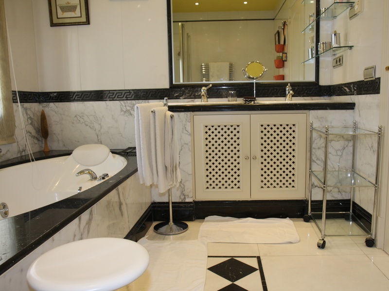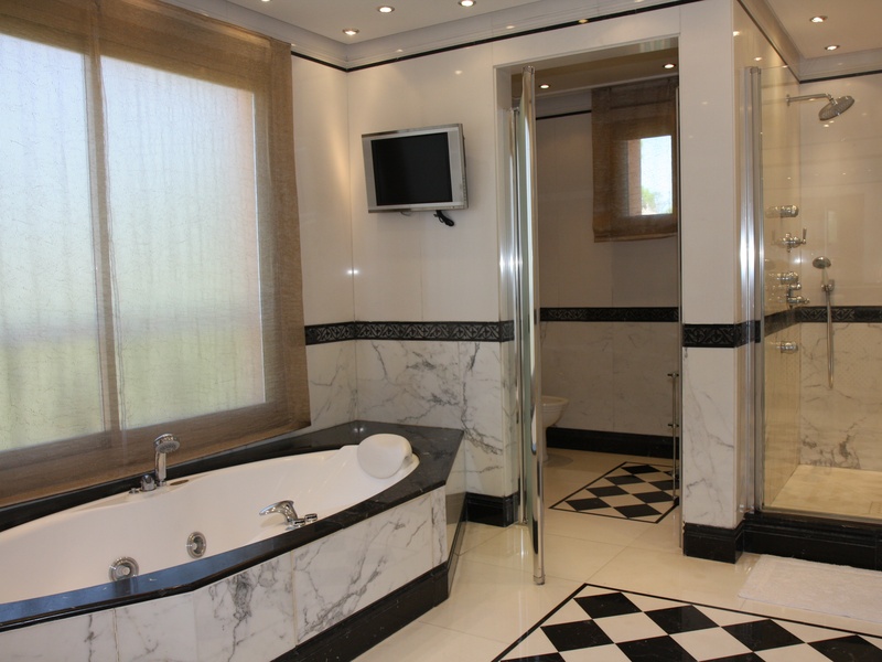Обогреваемый мраморный пол, венецианская штукатурка стены.