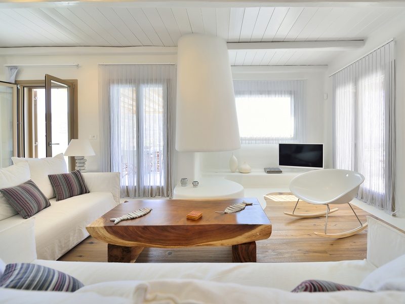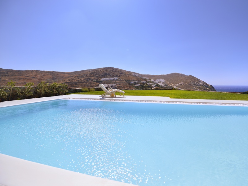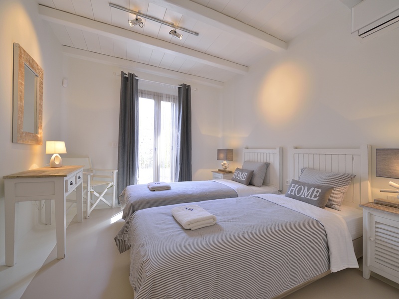 The villa is 220 sq.M. 4 bedrooms plus one for the staff, and has 4 stunning bathrooms with combined floor wooden deck with technical white color which rises on the walls of the shower, also impresses the whitewashed fireplace is in the air, all rooms have the latest technology a / c. Outside pool combining the white with grass and wooden deck that give absolute sense. At poolside moments, and large dining room that can accommodate large groups. Worth mentioning interior designer made a great decor , so the result is that the relaxation is unique . The villa is located in one of the most famous beaches Elia 700 meters and gives you a panoramic view of it.