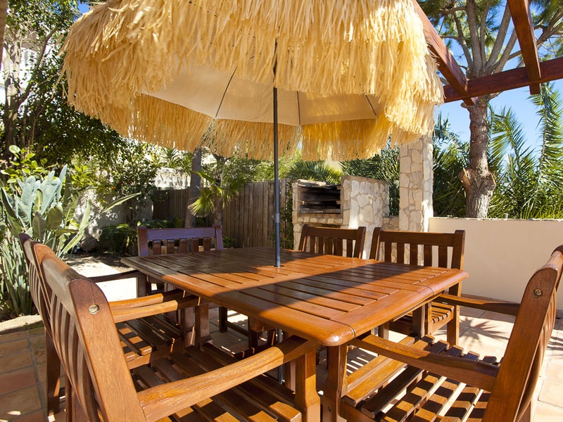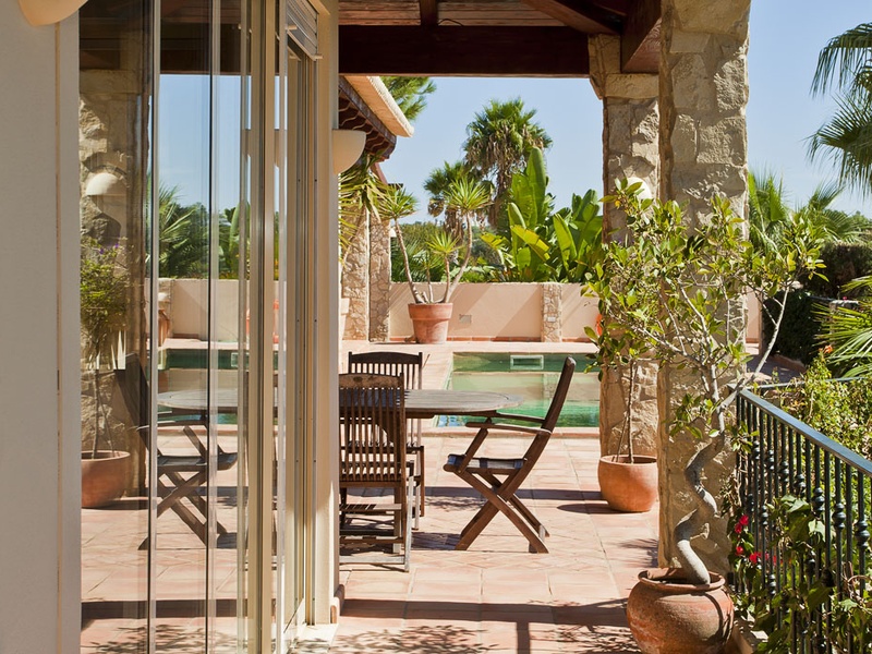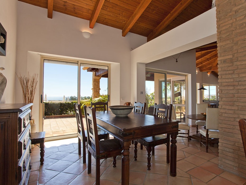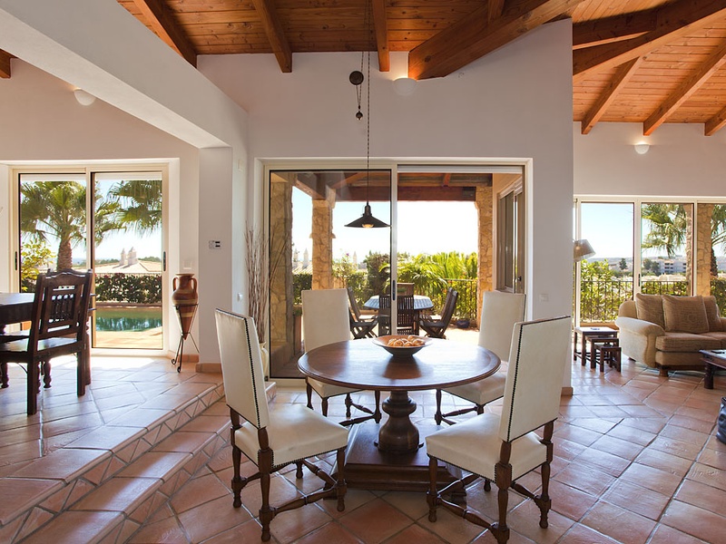 Просторная вилла с величественным убранством, сочетающим балочные деревянные потолки, внушительные колонны и каменную отделку на стенах. Гостиная и столовая объединены и имеют выход к бассейну, расположенному с южной стороны и имеющему прекрасный вид на океан, по центру помещения расположен островной камин. Отличительной особенностью этой виллы является то, что в ее состав входят полноценные гостевые апартаменты, которые имеют отдельный вход и, при желании, могут быть изолированы от дома.