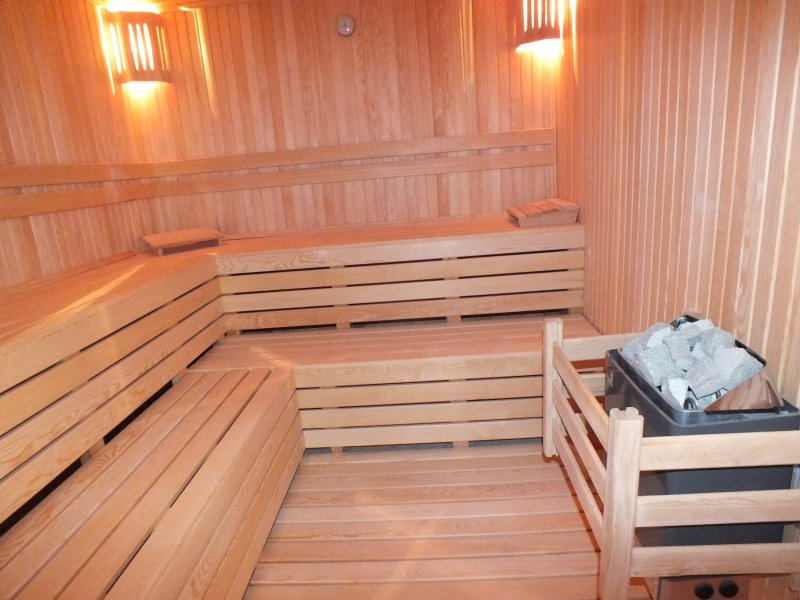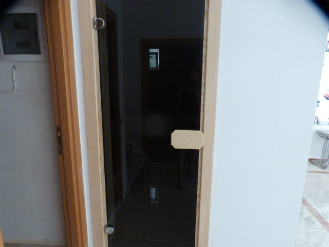 Внизу - сауна, ванная кмната и помещение под тренажерный зал (там сейчас вторая гостиная, диваны стоят.