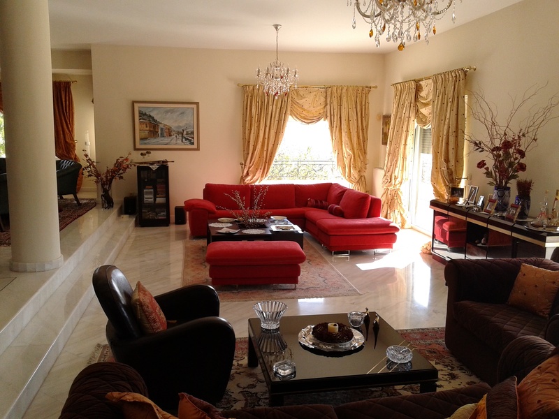 Luxurious villa for rent in 5500m plot at Paiania. Nice garden with a swimming pool of 8,5x15,5m2 and excellent view .Ground floor of 370m,where you find 2 bedrooms for the guests, 2 bathrooms quash (incomplete), salon, dining room and kitchen with fireplace and direct access to the garden and the pool, .At the main entrance of the villa, there is the main living room with fireplace, the dining room, all open space, and the kitchen with access to the back garden with the barbeque. Next floor has 6 bedrooms with their own bathrooms, and big verandas. All floors are connected with an elevator of 7 persons , Alarm system availiable, many storages underground floor ,7 parking spaces.There is also a small house of 2 rooms for the gardener.(9317)