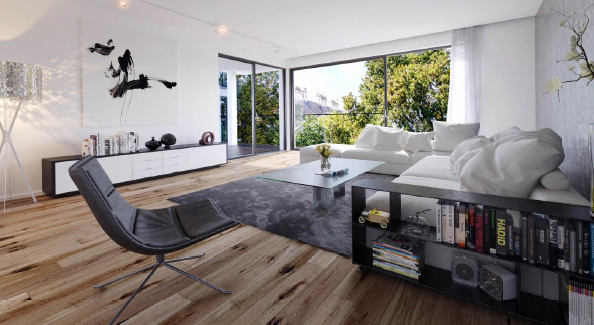 4-roomed apartment with a swimming pool in the garden in a new building in Vienna, Austria