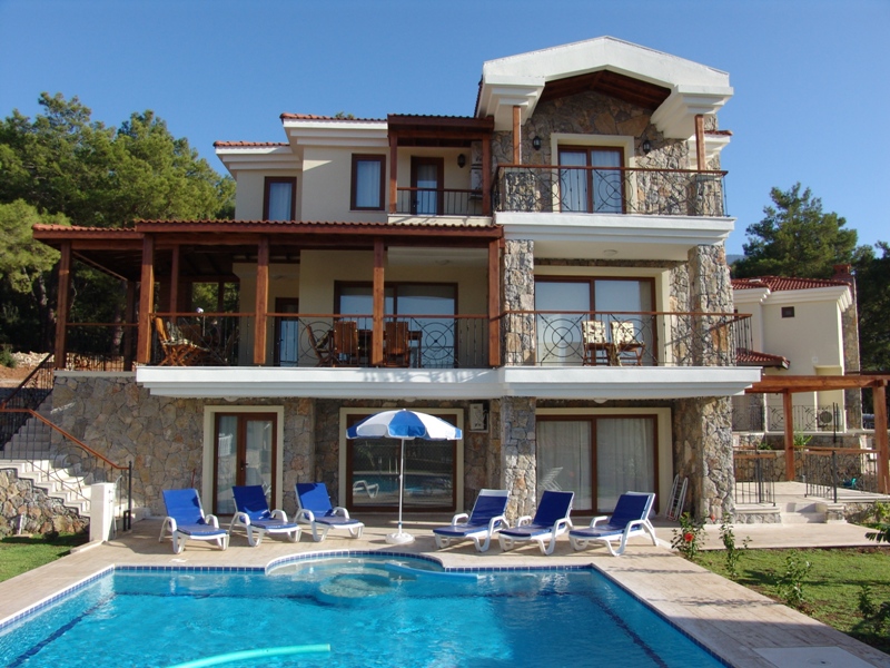 Скромная и большая вилла в аренду в Фетхие, в районе Олюдениз, в маленьком сосновом бору. 5-и спальная вилла в аренду имеет частный бассейн и частный сад. Место, окруженное соснами. Красивая вилла в аренду в Фетхие находится только в 200 метров от гл...