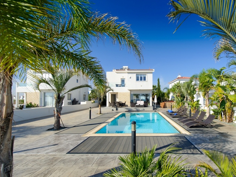 Absolutely stunning, Mediterranean style, spacious holiday villa in a fantastic location on the seafront, right in the heart of Protaras. The famous, extremely popular Fig Tree Bay is just a 1-minute walk away.This huge villa is comfortable, roomy, s...