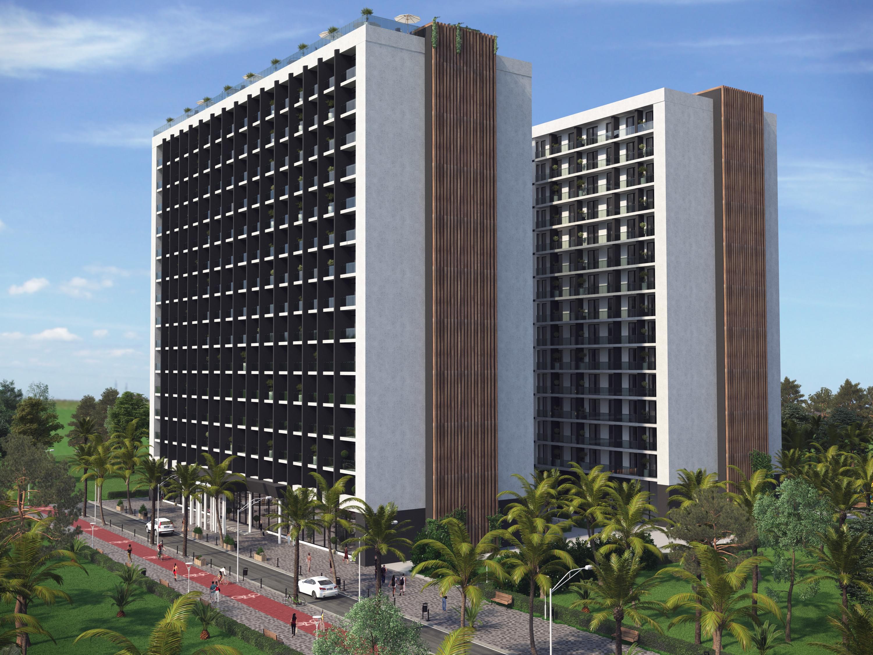 Апартаменты в комплексе на Новом Бульваре, в 8 минутах езды от аэропорта. Комплекс состоит из 15 этажей (14 жилых этажей и первый этаж - коммерческие помещения), всего 596 номера, включает в себя рекреационную зону, места для паркинга, а так же прис...