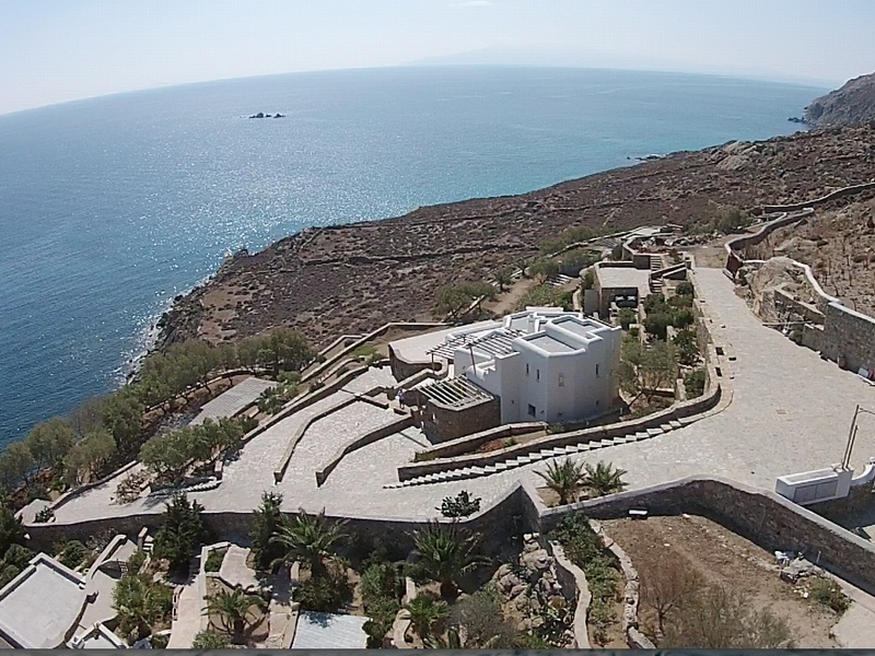 The villa on the edge of the cliff. With views of the sunset, the island of Tinos and Syros and all the cruise ships to pass in front of you make the important position of the villa. The view on the edge of the cliff with altitude difference from t...