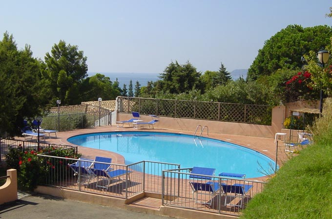 Holiday apartments near the beach in Villasimius, Sardinia. The apartments are for 5 or 7 people, with garden, porch and terrace with view of the sea. Common services of the residence are: common room, common gardens, children playground area, loundr...