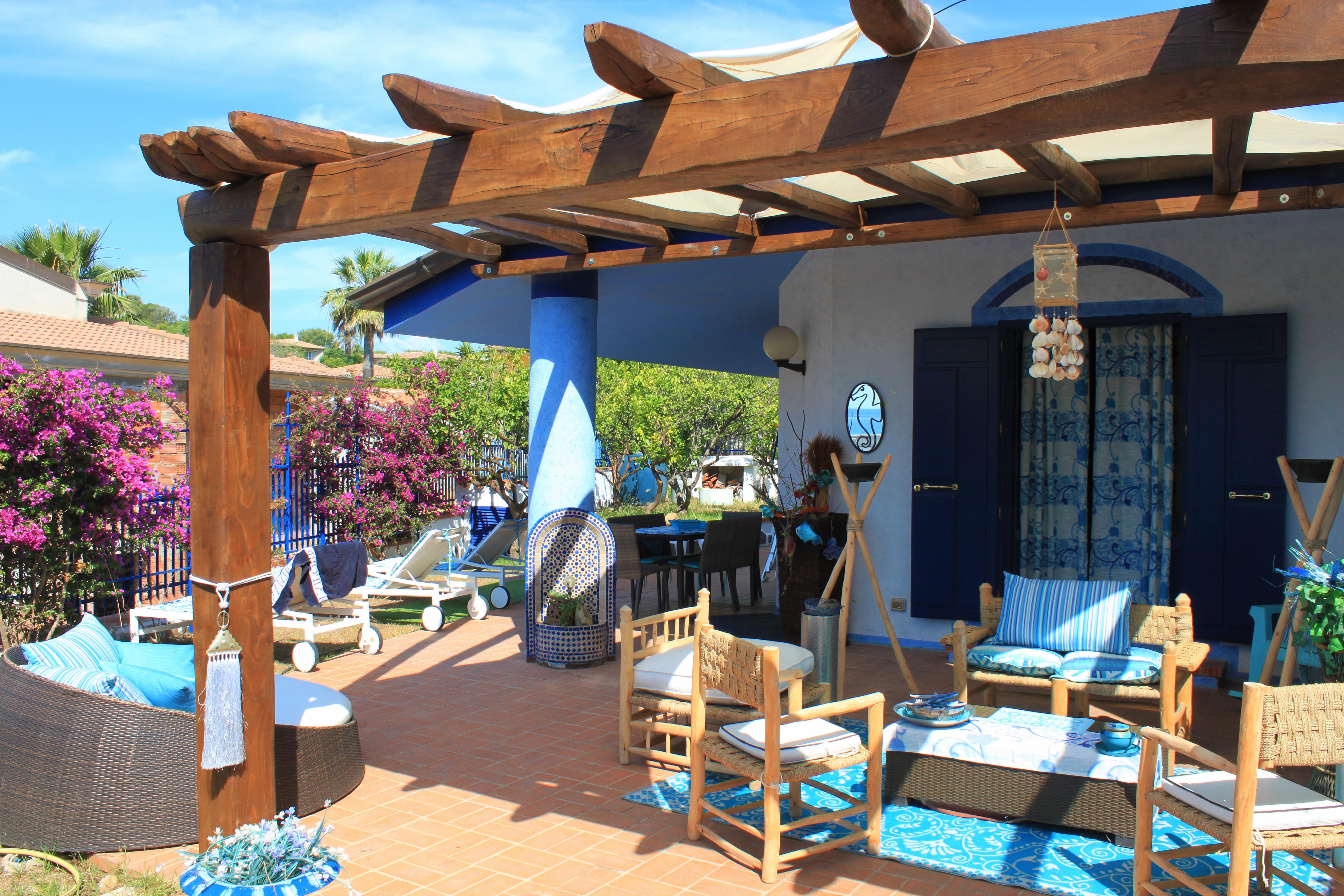 Villa 45 meters from the beach in Sardinia, with pleasant outdoor terrace, garden, heating with gas radiators, 2 parking spaces. Total area 140 square meters plus 300 square meters of garden.