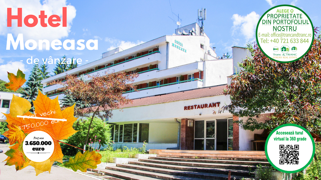 Watch the 360 virtual tour of this property: http://trancandtranc.ro/Tur%20virtual/Hotel_Moneasa/index.htm Further, we have the pleasure to present an unique opportunity, not to be missed and that definitely deserves all your attention. Tranc & T...