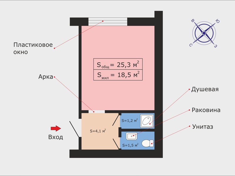 Apartment 25 m2 / Floors: 9 / Rooms: 1
