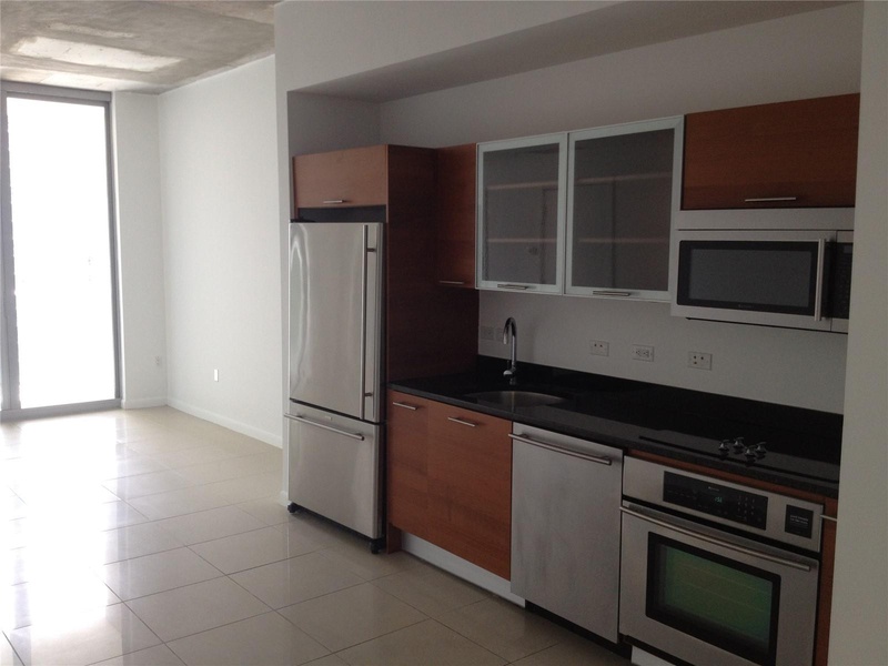 Угловая квартира в Майами с видами на залив; гостиная, спальня, ванная комната, гардеробная, балкон, современная кухня с гранитной столешницей и приборами из нержавеющей стали, плиточный пол, окна от пола до потолка. Кондоминиум имеет бассейн, фитнес...