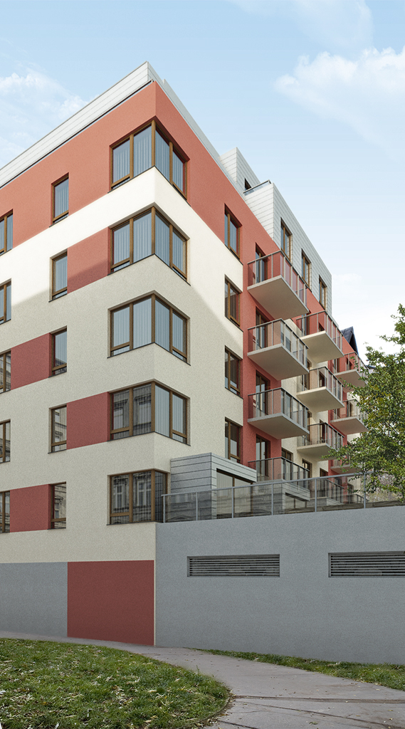 В современном 8-ми этажном жилом доме расположены 32 квартиры, площадью от 33 м.кв. до 90 м.кв. Некоторые квартиры имеют террасу, балкон и место для парковки в гараже. Цены квартир: от 125 300 до 313 600 евро...