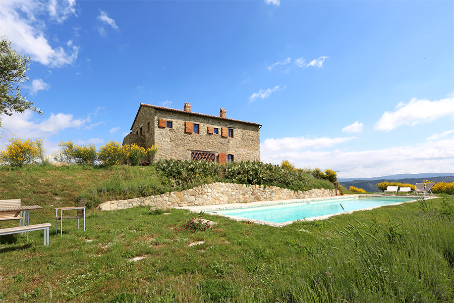Luxury farmhouse for sale in Val d'Orcia, Tuscany - "Colle Paradiso" In the heart of Val d'Orcia, in a unique and dominant position, we can admire this ancient stone farmhouse, completely restored and finished with high-quality materials and constru...