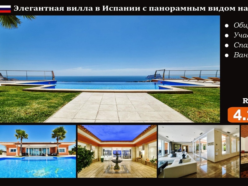 Elegant villa in Spain, in a classic style with panoramic sea views in Moraira (Costa Blanca). Total area: 750 m2 Plot: 2320 m2 Bedrooms: 5 Bathrooms: 5 Sea View: Yes Distance to sea: 2.5 km Lot: MOR151119 PRICE: 4 200 000 € The villa is loc...