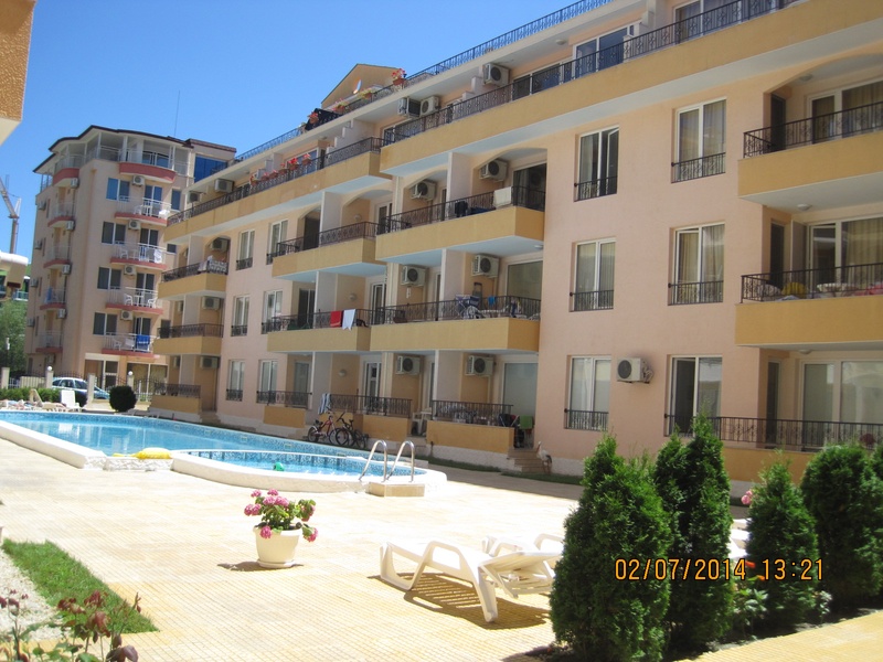 One of the most modern and luxurious complex on the Bulgarian Riviera. Located in the western part of Sunny Beach, just 300 meters from the beach and 200 meters from the central area. Fully furnished studio and kitchenette with air conditioning, e...