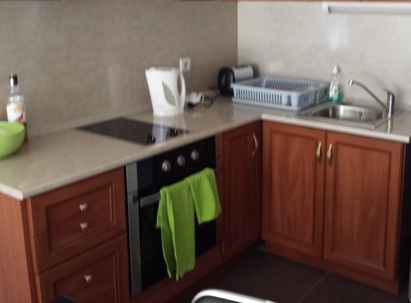 Апартамент с отделной кухней, баня с WC /теракот и фаянс/, терасса., 45 кв.м. чистая площ., отличное состояние,15 етаж, прекрасная панорама. Полностью обставлен /новая эл.техника и мебель -холодильник, стир. машина, 2 телевизора, плита с 4 конфорками...